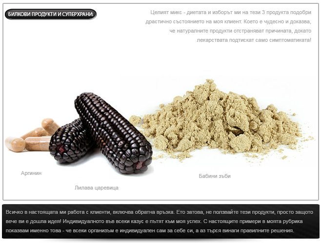 Дори през първите 4 месеца бяхме само на режим на хранене, без спорт. След това интегрирах фитнес режима. Но за това по-долу. В диетата на клиента ми приложих и някои други водове билки и продукти, важни за медицинските му показатели: