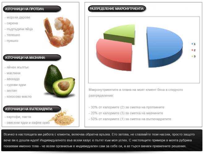 Разбира се, през месеците съвместна дейност правех и корекции в разпределението на калориите и дори между макронутриентите, защото подбрявахме едни показатели, други стояха същите. Тромава работа! Не искам да го крия, а напротив – споделям нещата такива, каквито са, за да знаете вие и други, че нещата искат време. Но стават! Получава се.