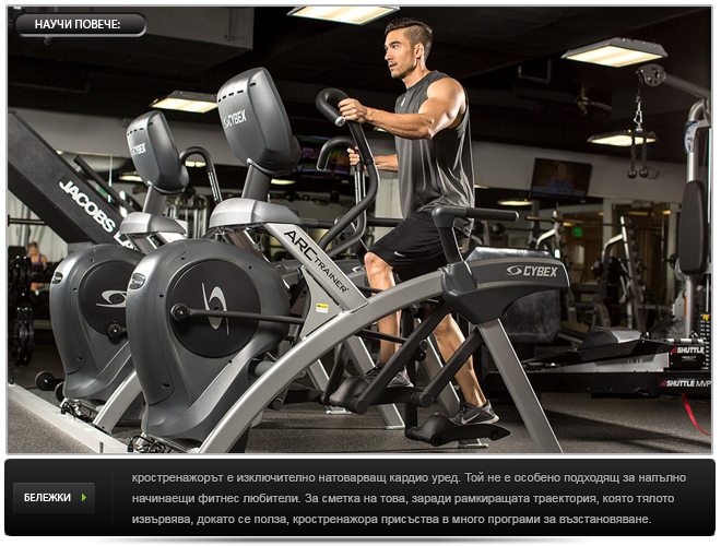 Всички тези специфики изграждат наистина едно кардио разнообразие в уесетените ползи на всеки уред. Т.е. ако желаете максимално натоварване от тренировка с кростренажор, изберете този, който има дълги “рога“, захванете ги максимално високо, а петите ви да са на платформи с голяма дължина. Така можете отделно да премествате вашето стъпало и да натоварвате различни части не бедрените мускули – можете да усетите натоварване близо до “капката“ на бедрата, в по-срединната зона или високо горе, до таза.