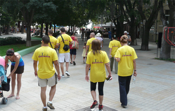 След уморителна работа и тежък работен ден, за всички ни, аз предприех нещо от сърце и предложих да почерпя с по чаша кафе и вода моите търпеливи ученици. Ето как изглеждаше само една част от курсистите ми, по улиците на град Варна, отличават се, нали?
