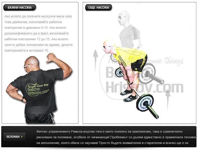 Видео демонстрация на фитнес упражнение “Римска тяга с щанга”