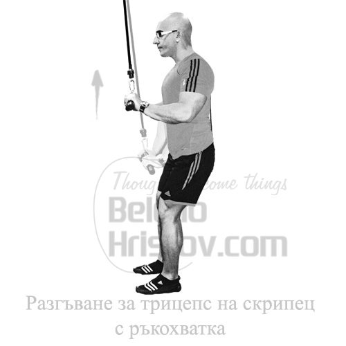 за трицепс изпълнявайте разгъване на скрипец с права ръкохватка